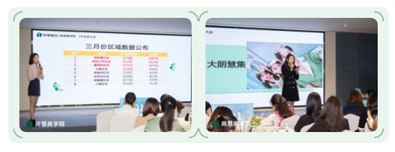 接着,安娜公布了三月份的数据,每一次数据的更新,都表示着努力奋斗的家人们在过去一个月里努力的成果。排名在前的店铺店长们上台分享了自己的经营经验,大朗慧集的店长媛媛为我们分享了一些自己的经验。谈及团队的重要性,媛媛不禁潸然泪下,回想起和团队伙伴们一起奋斗拼搏的日子,三个人不辞辛劳,竭尽全力超标完成定下的目标,收获了不凡的业绩。清晰目标更是重中之重,每日梳理目标、核算业绩。在公司的机制的基础上,店铺自己再做出小机制,调动积极性,为业绩奋斗。还要做到眼光放长远,与同区域店铺合作,合作共赢,达成目标!